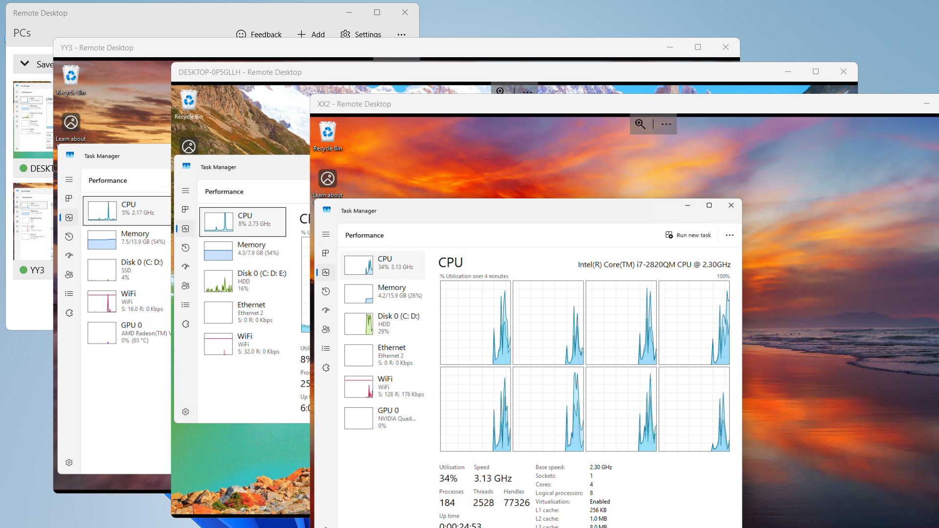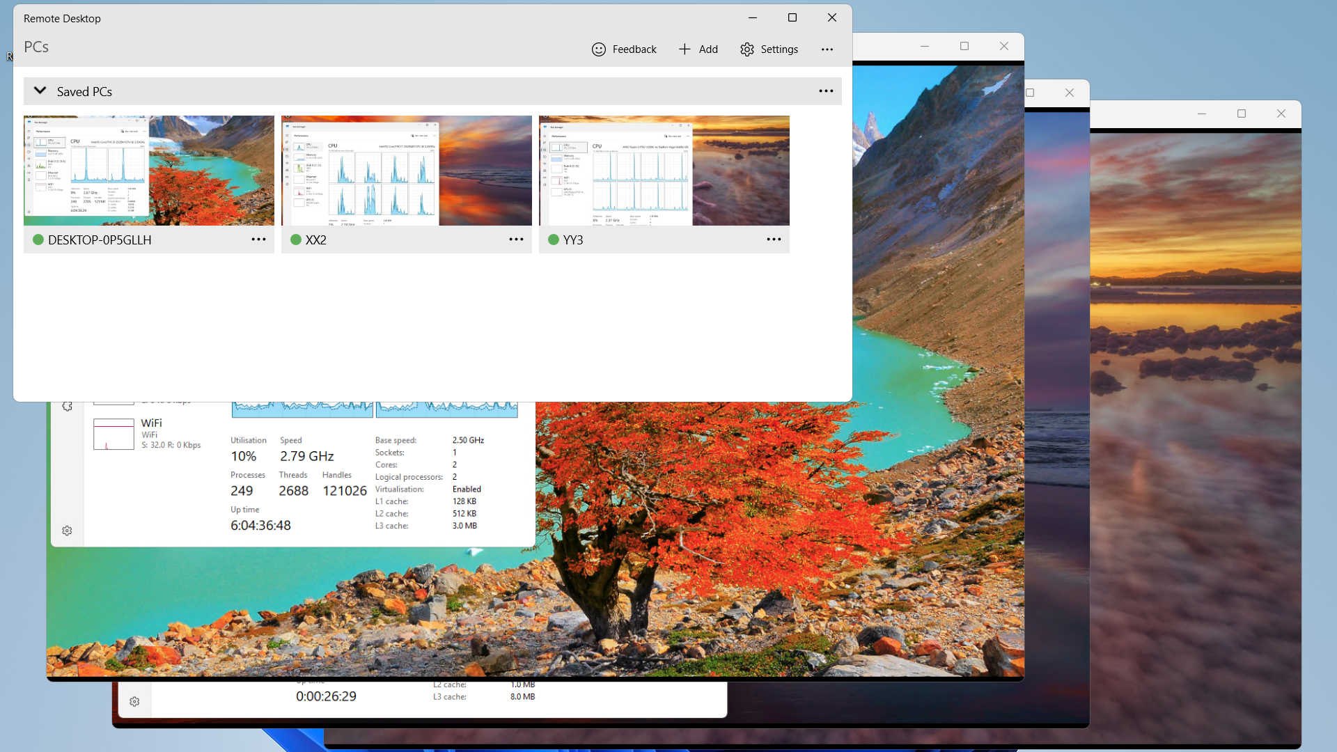 ms windows remote desktop app going crazy with ms windows ms store remote desktop app connected to intel i5, i7 and amd ryzen 5